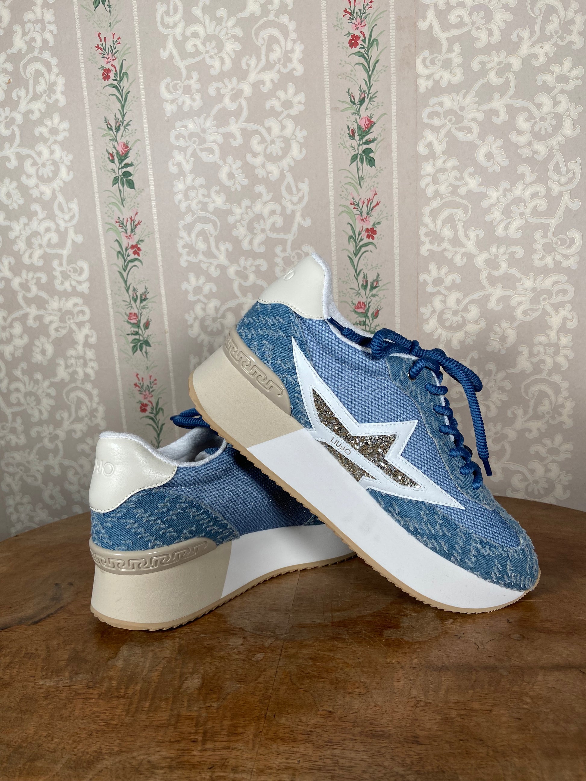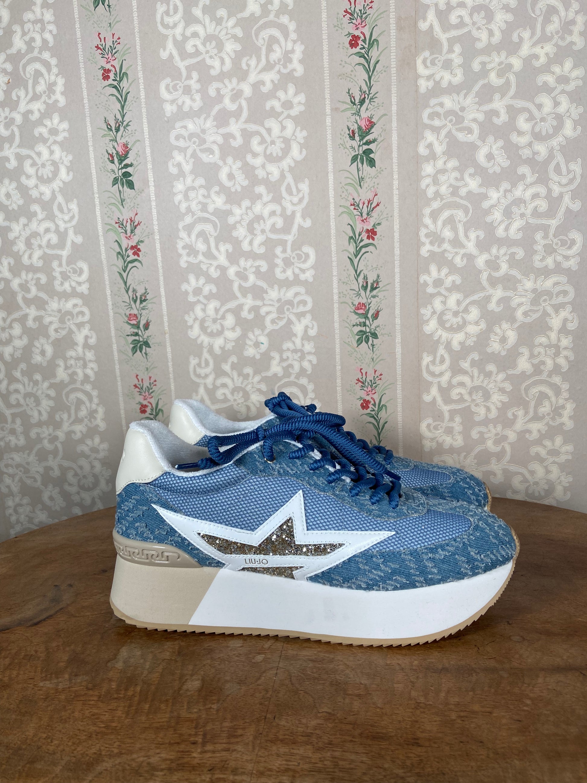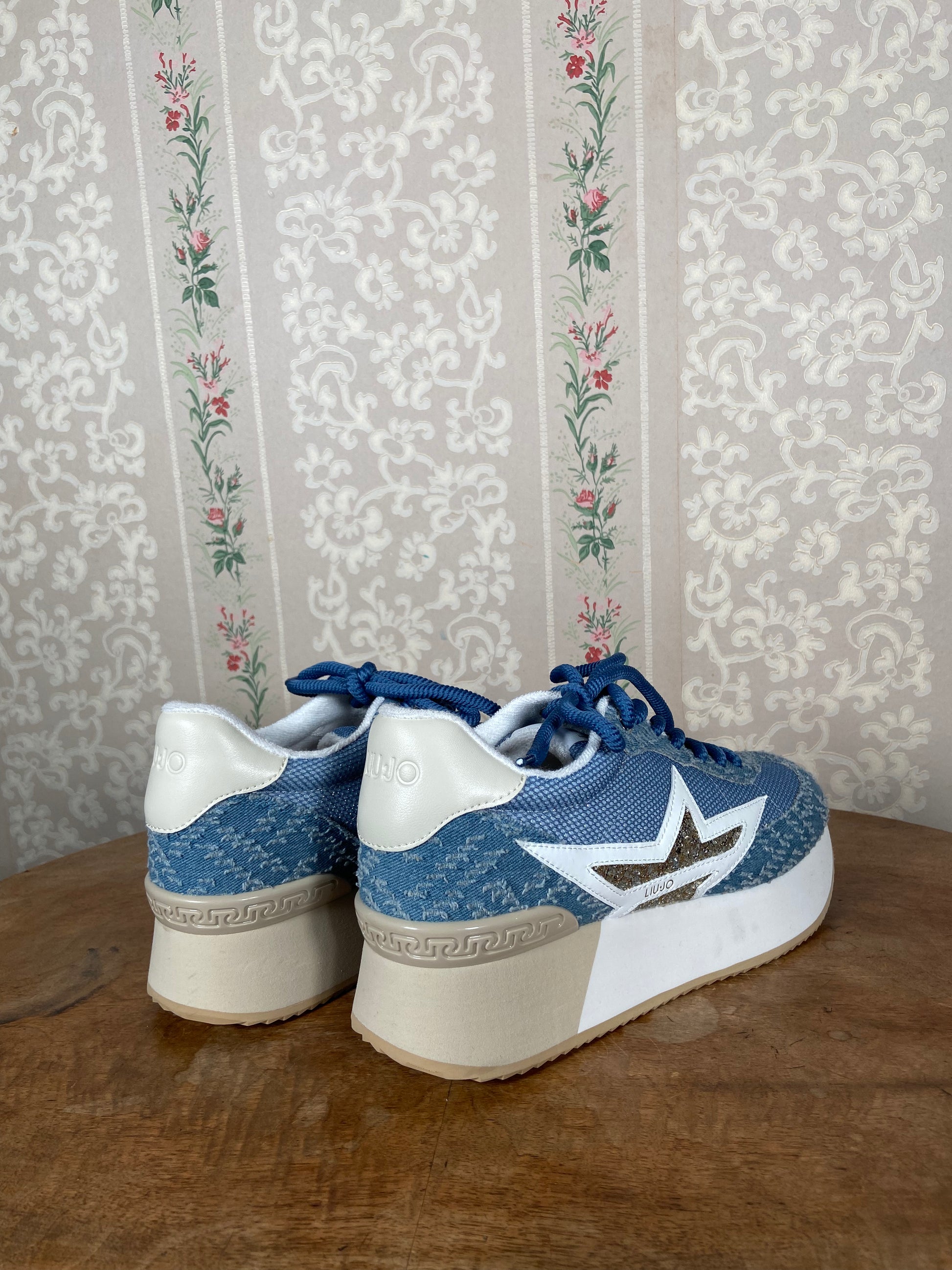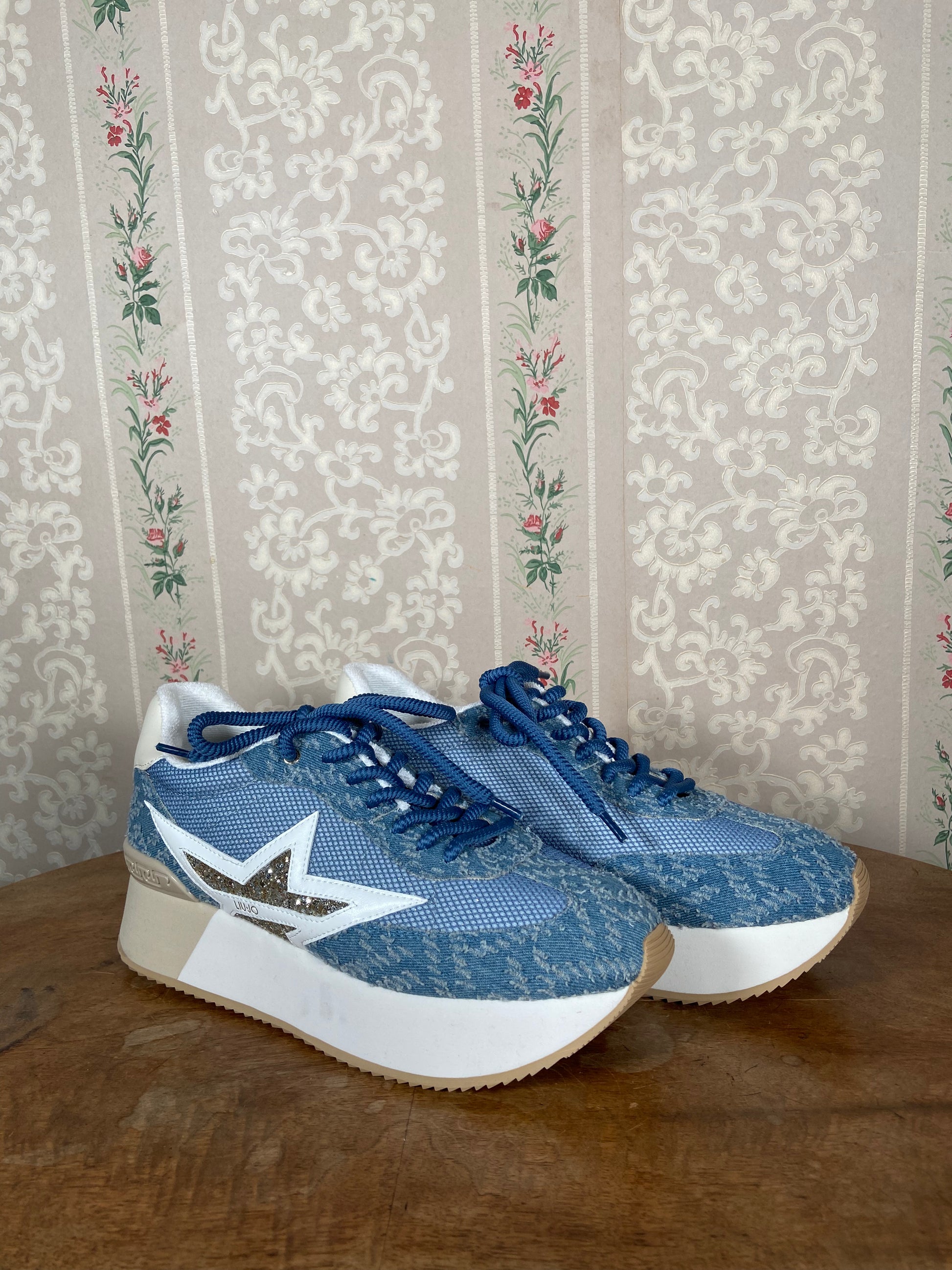 Baskets plateformes en denim.