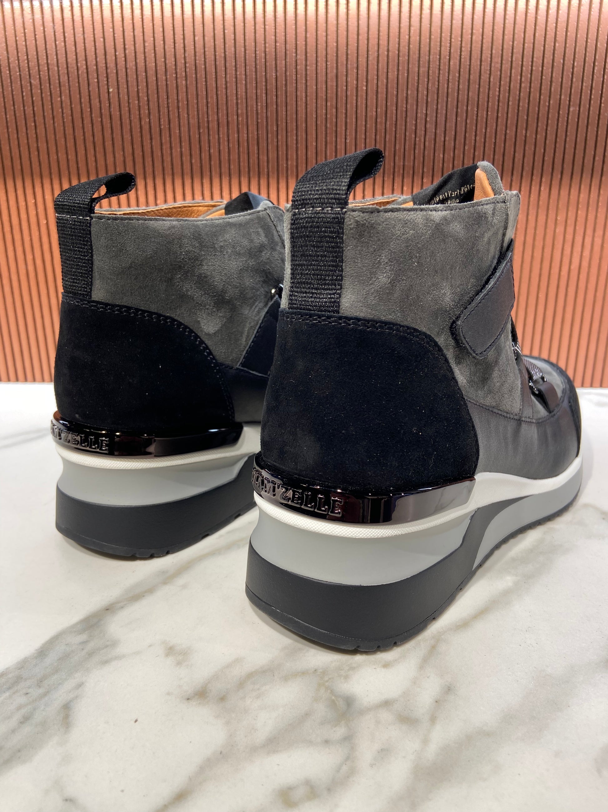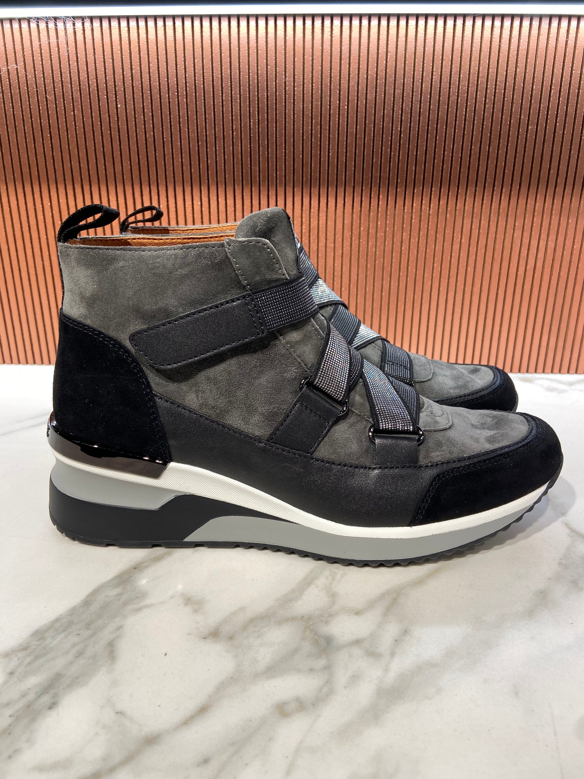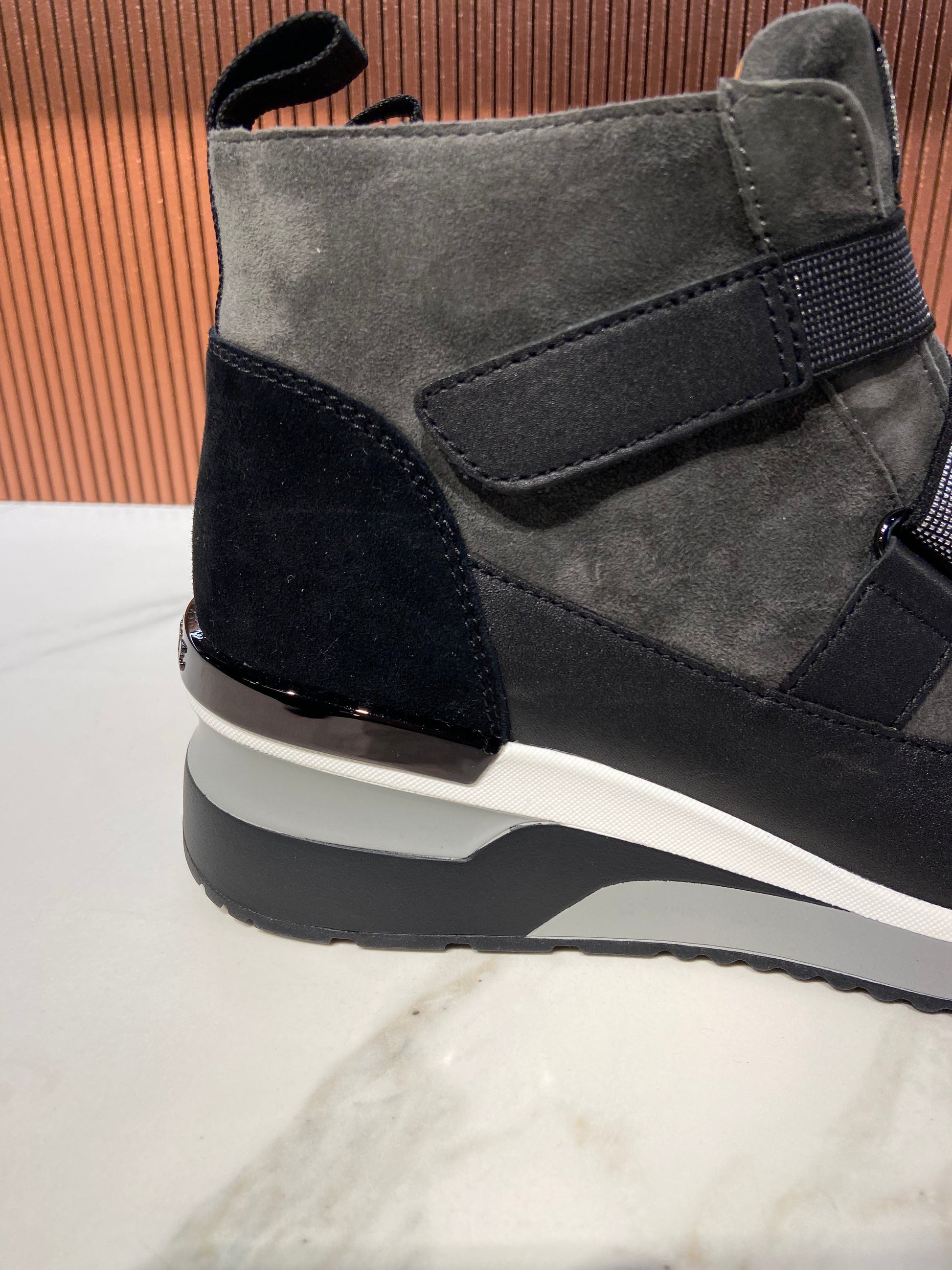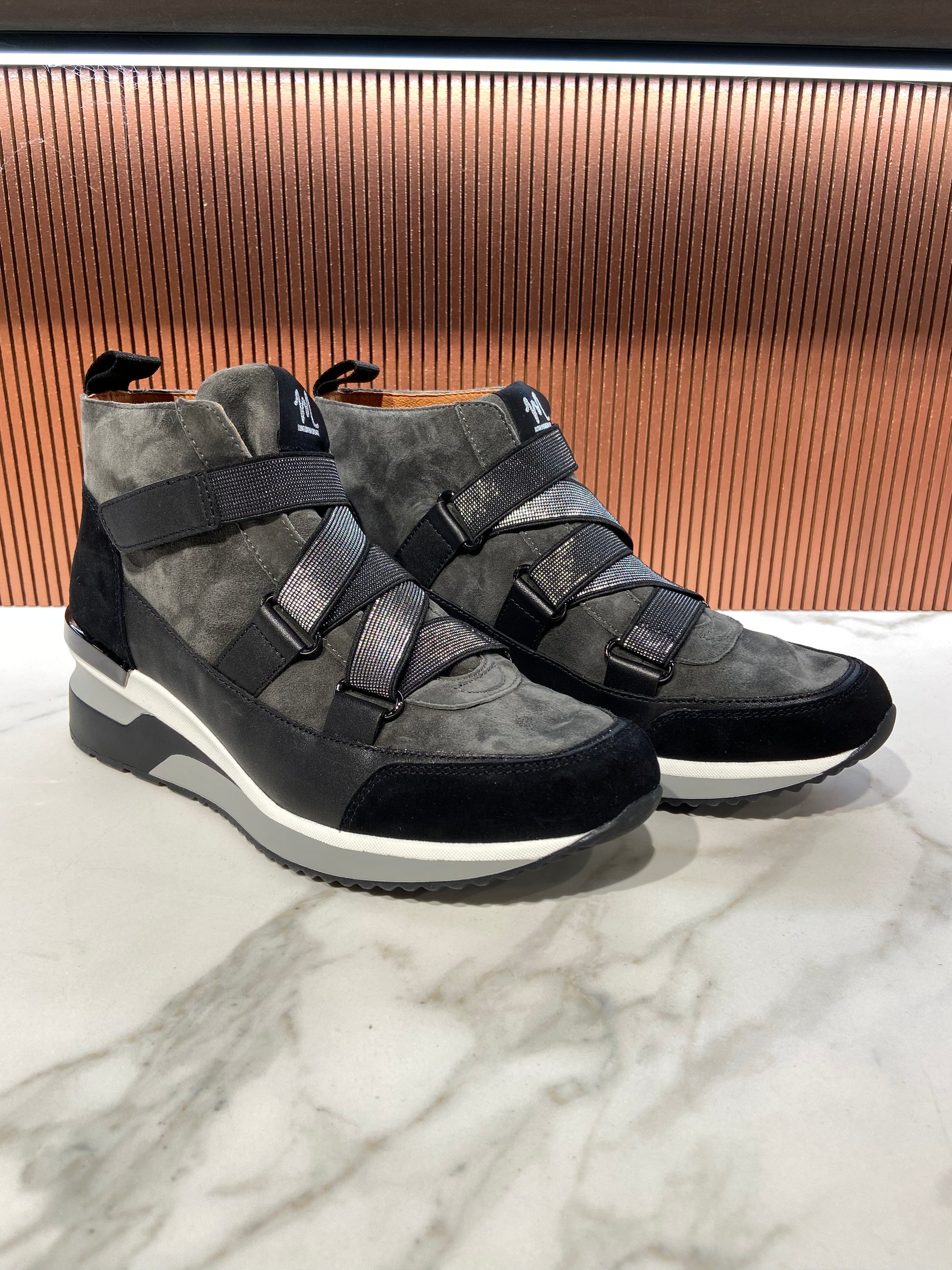 Bottines/Baskets en cuir anthracite à scratch.