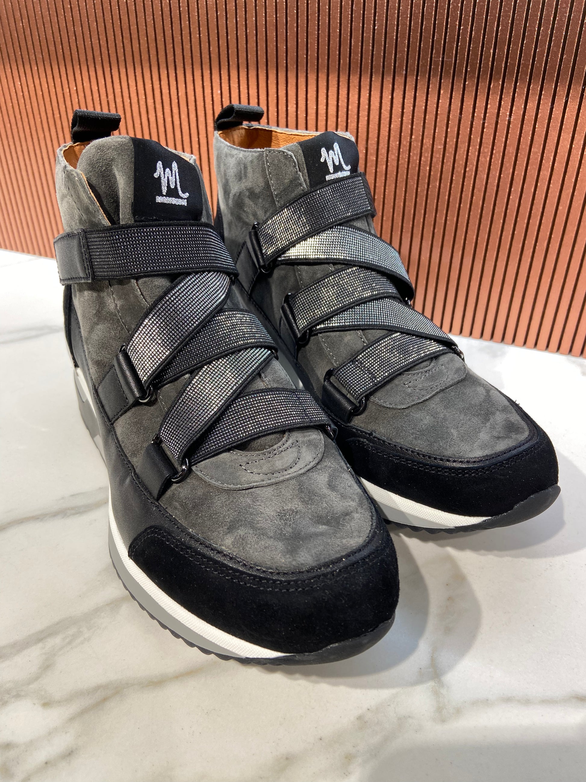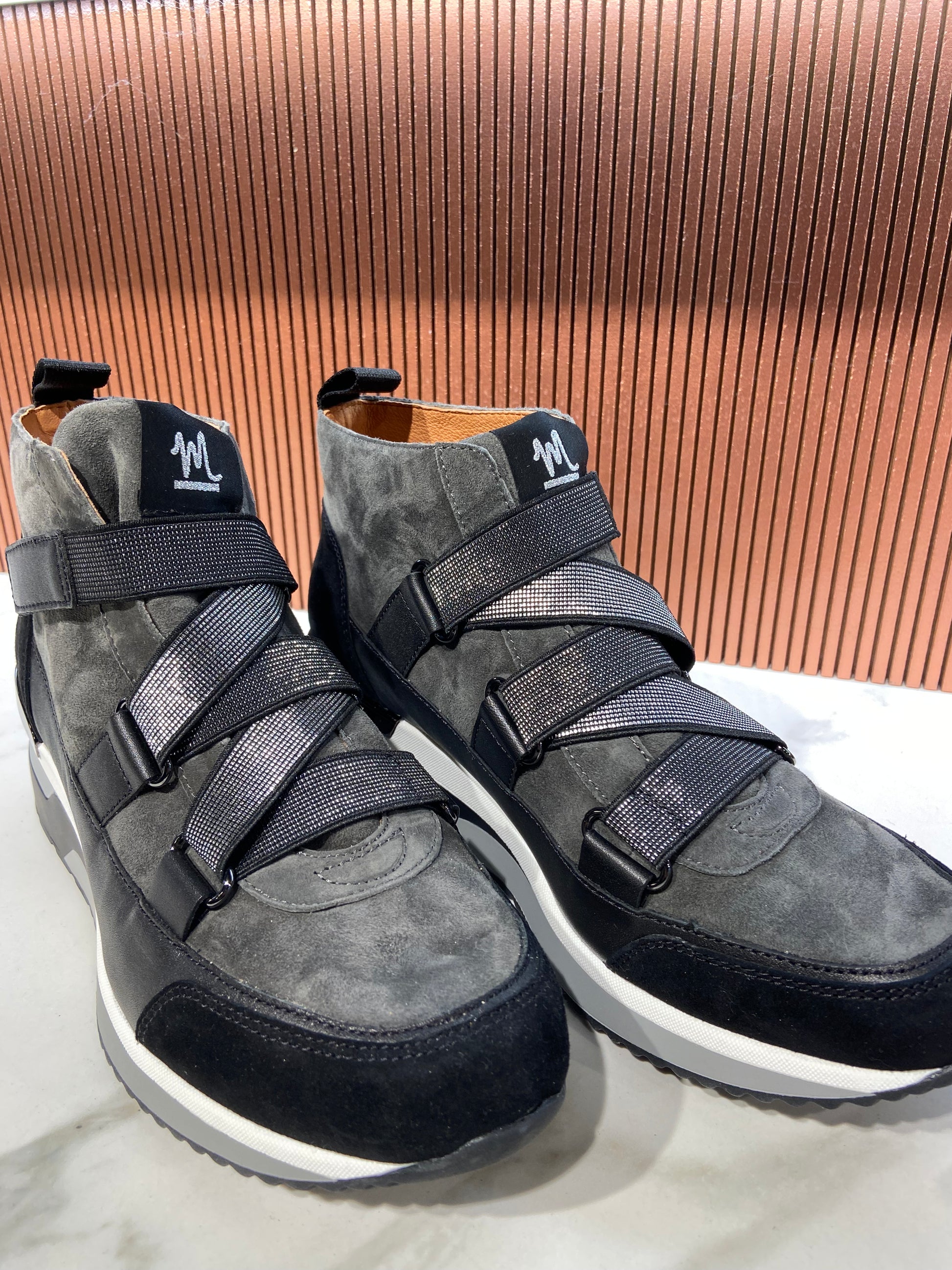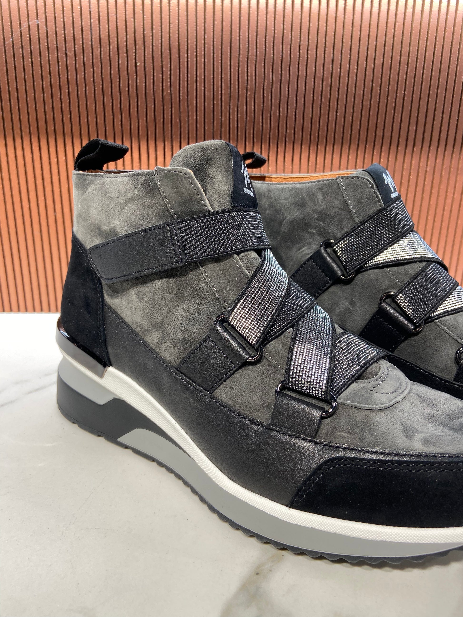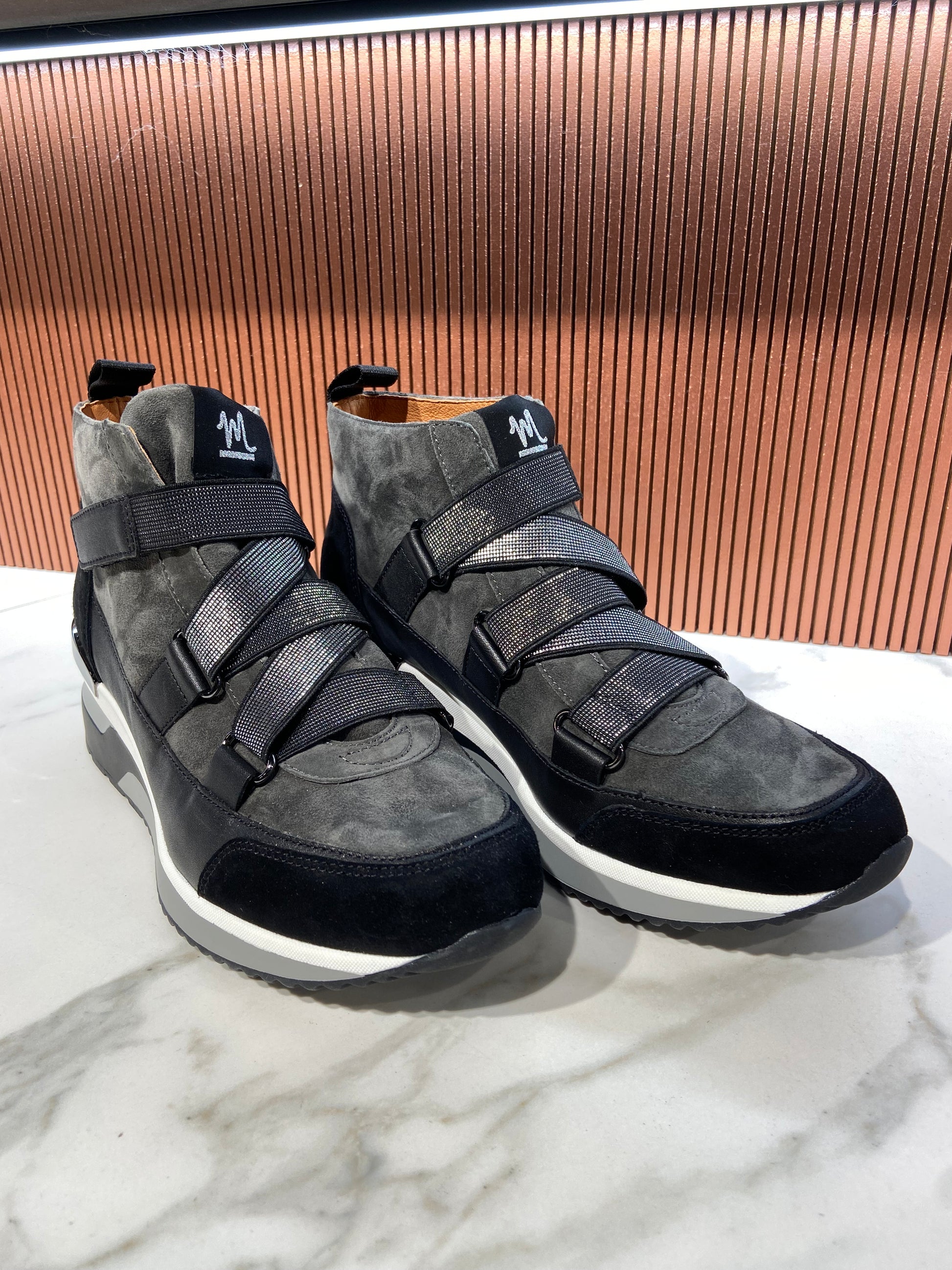 Bottines/Baskets en cuir anthracite à scratch.