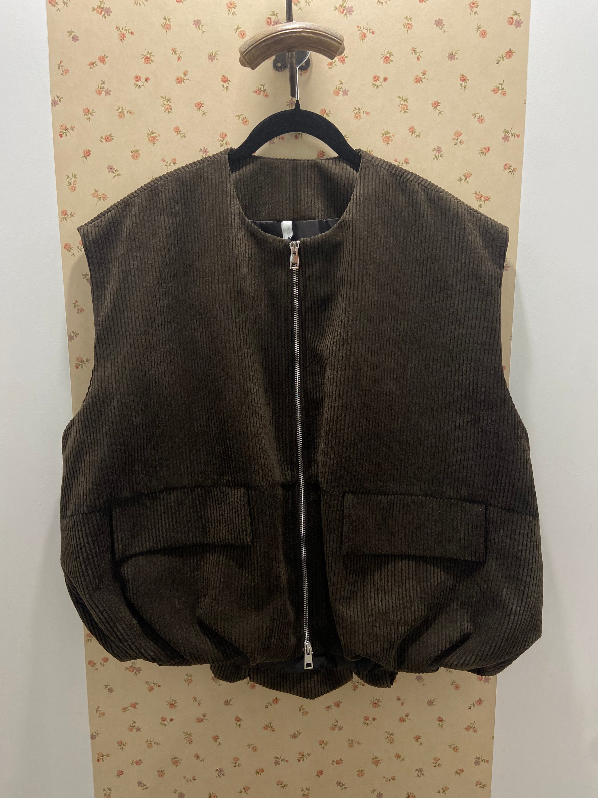 Gilet en velours avec zip, coupe oversize.