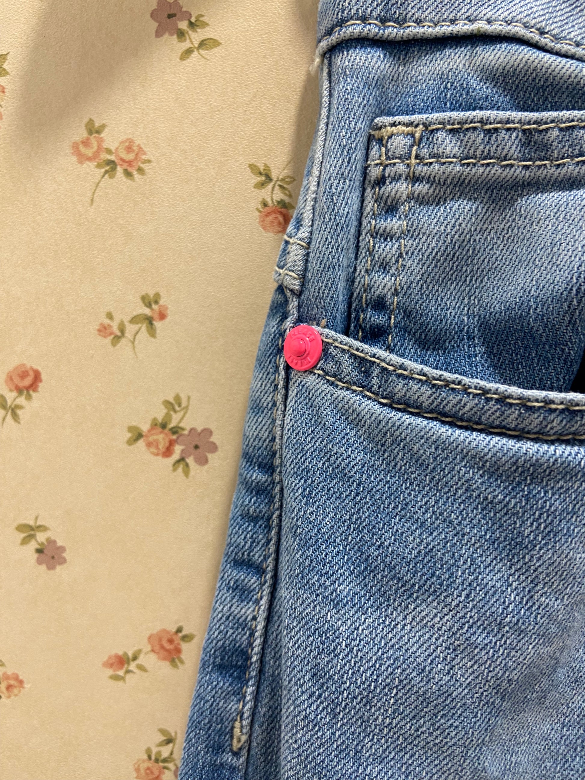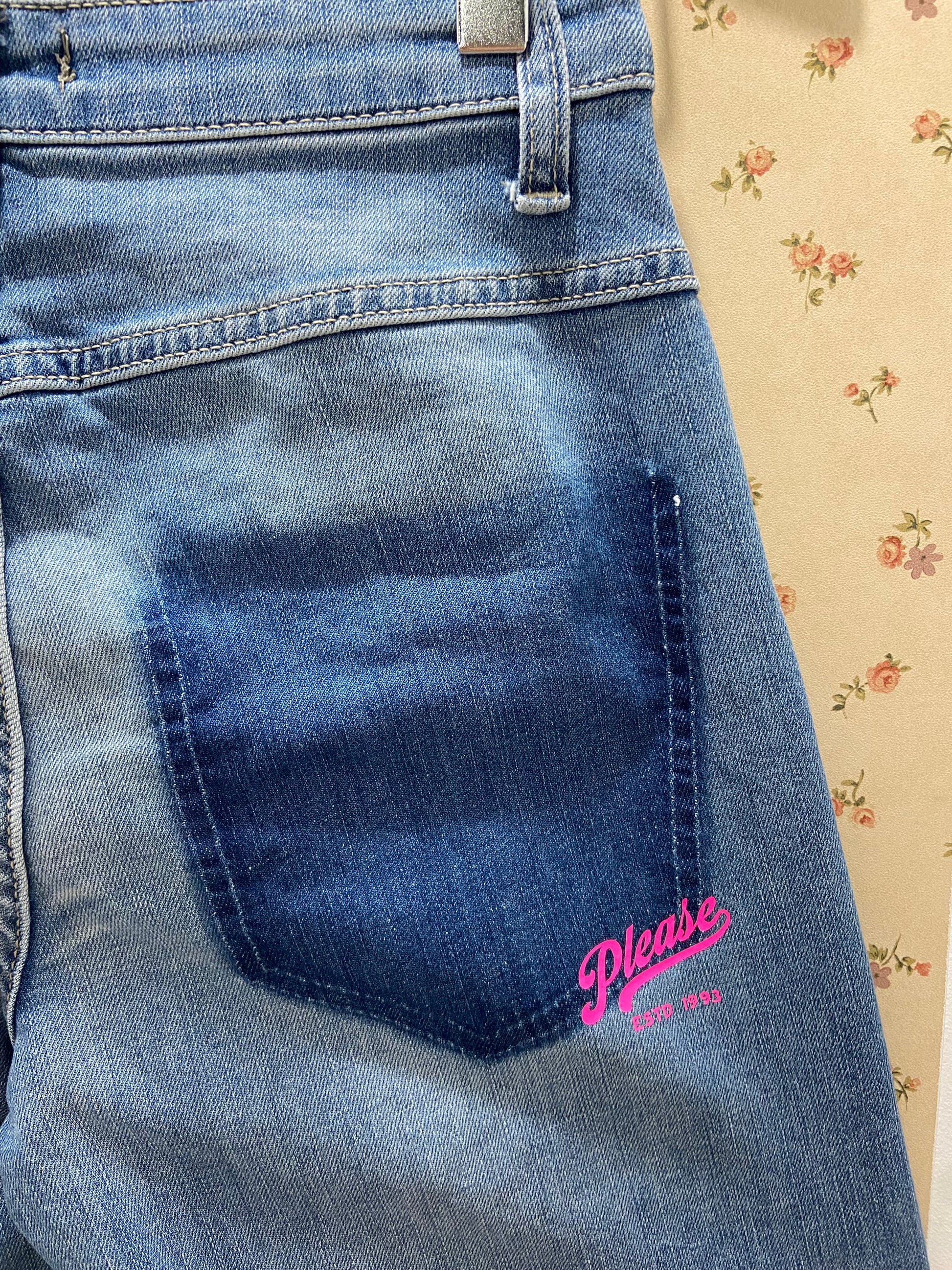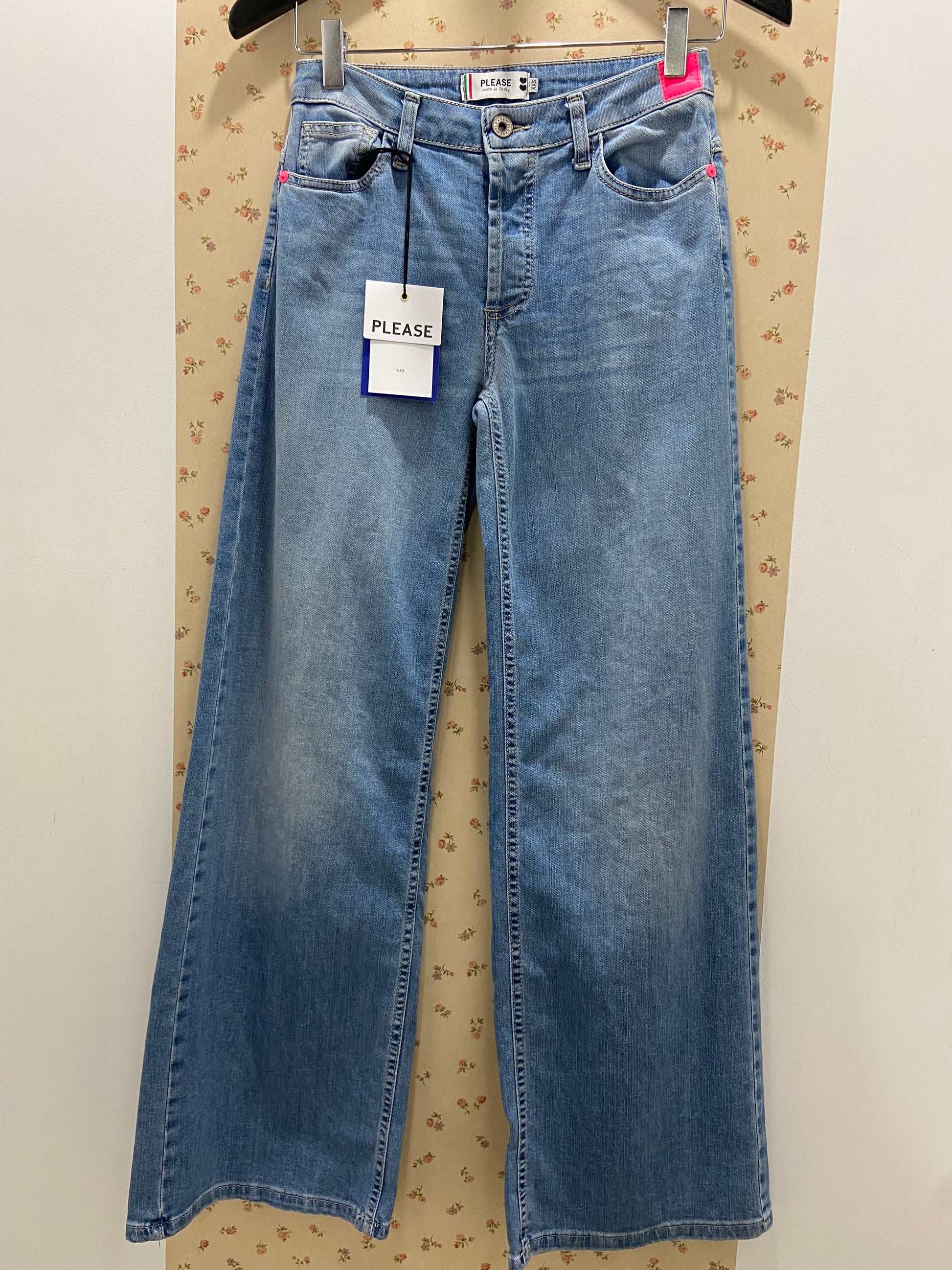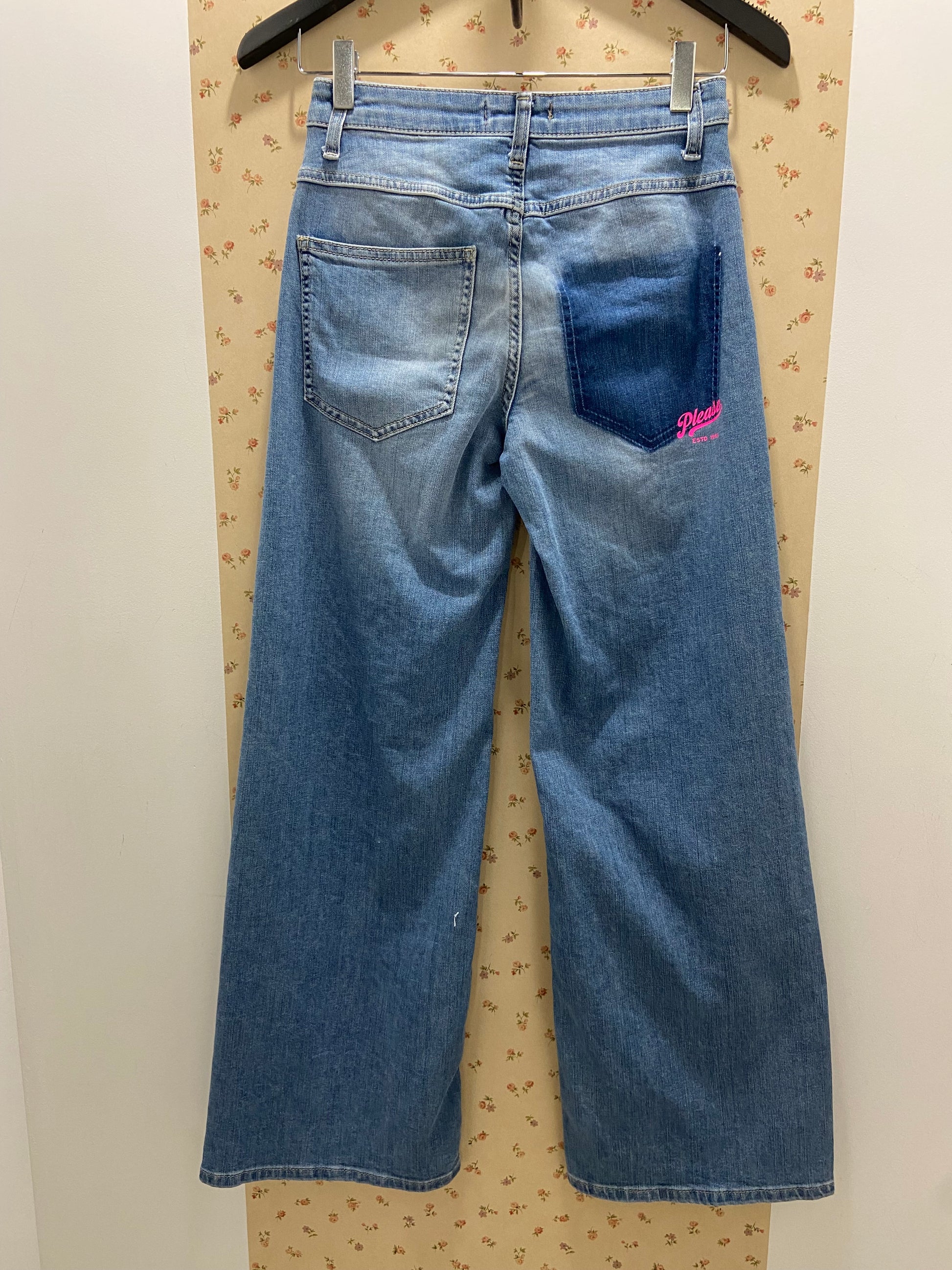 Jeans coupe wide 7/8ème avec finitions rose fluo.
