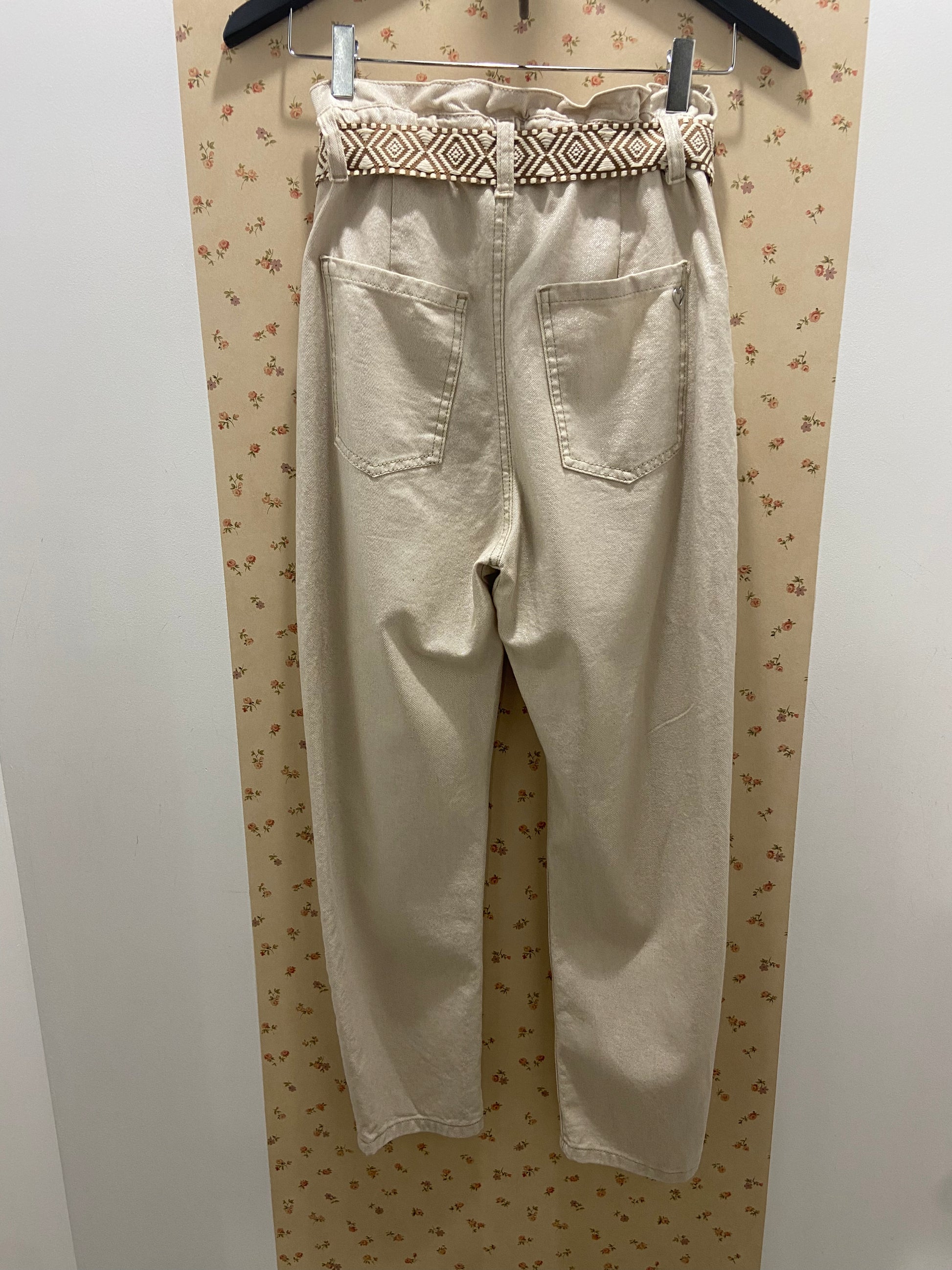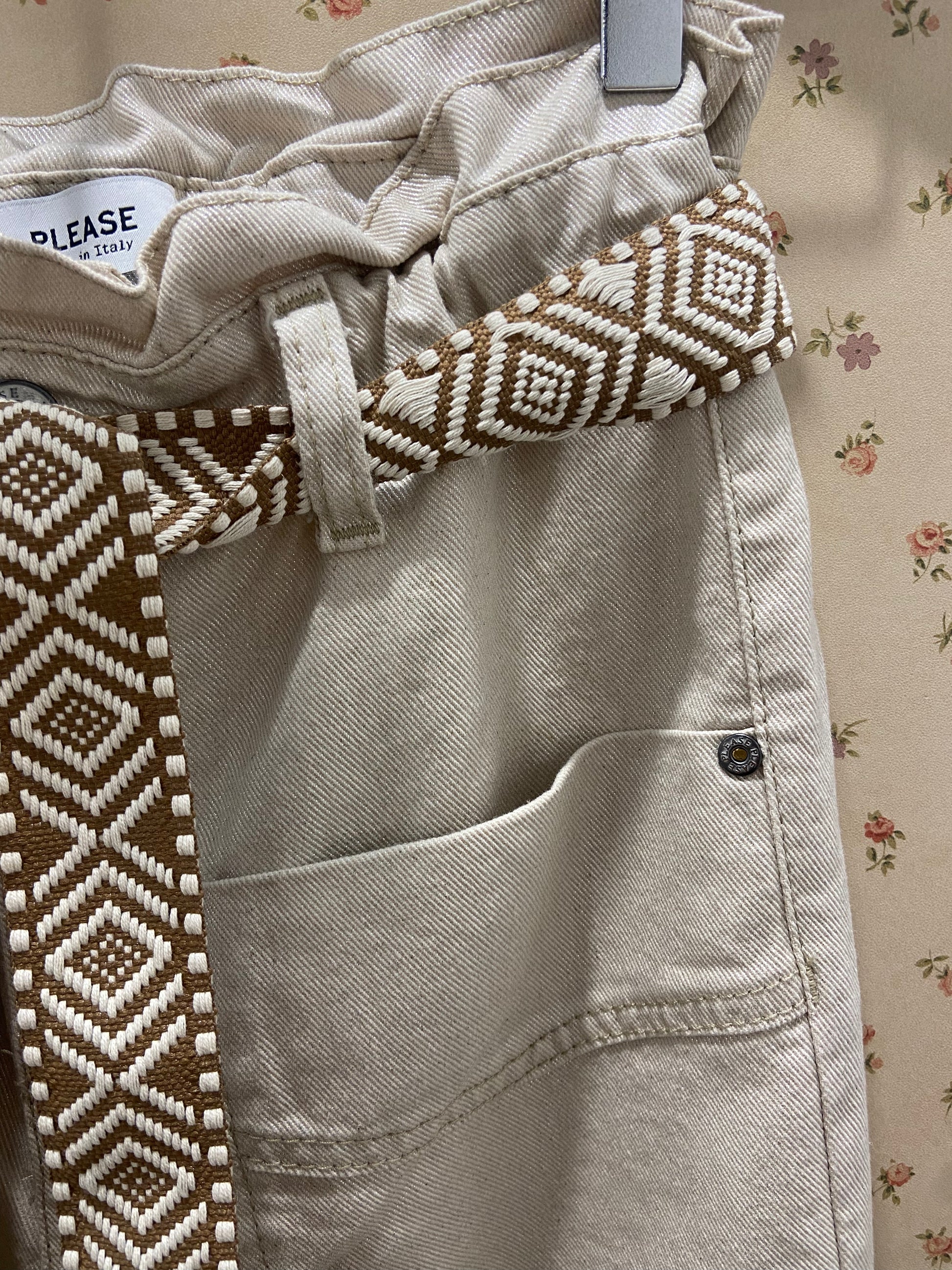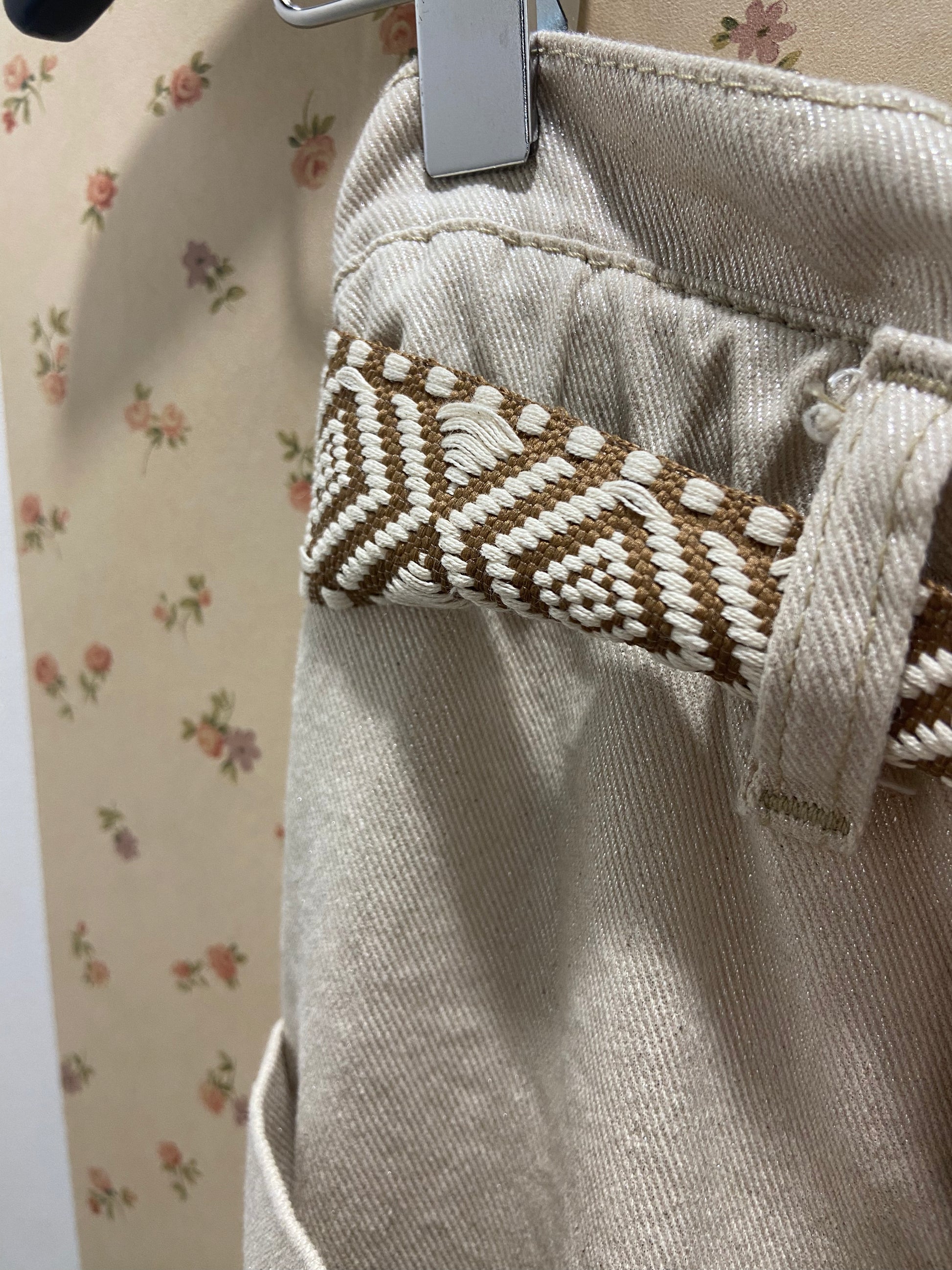 Pantalon coupe baggy avec grandes poches plaquées, la toile du pantalon est brillante (voir photos).