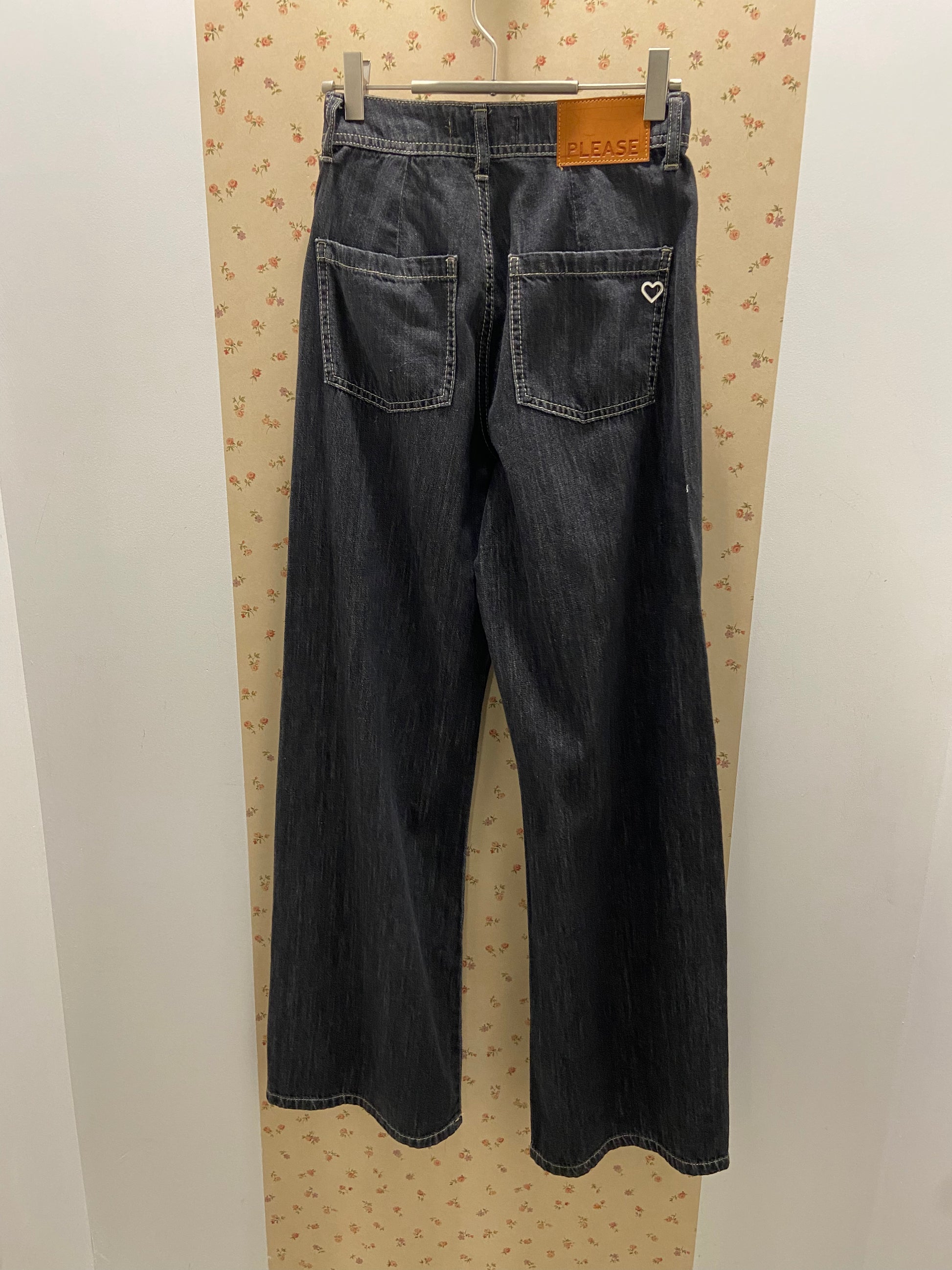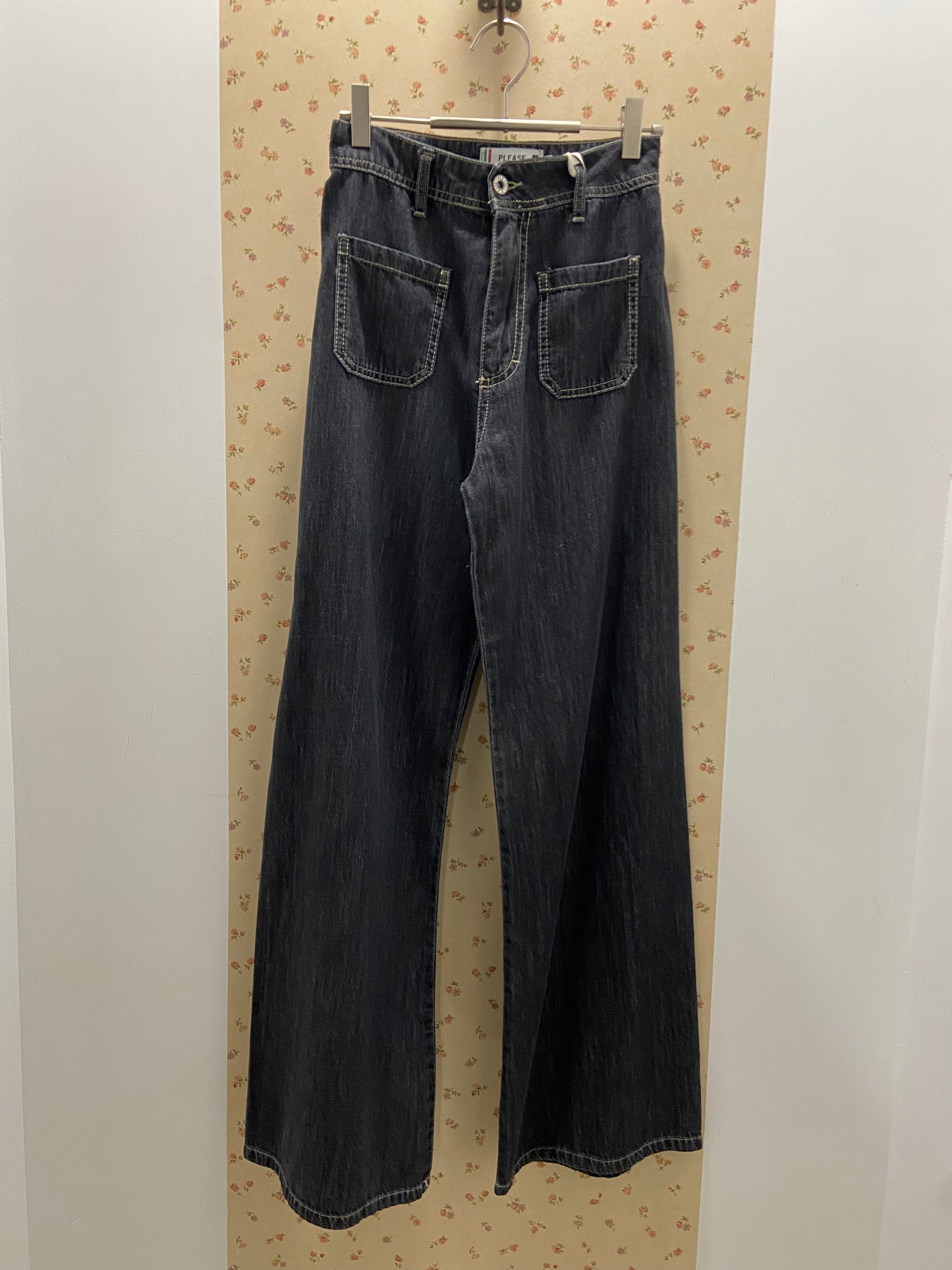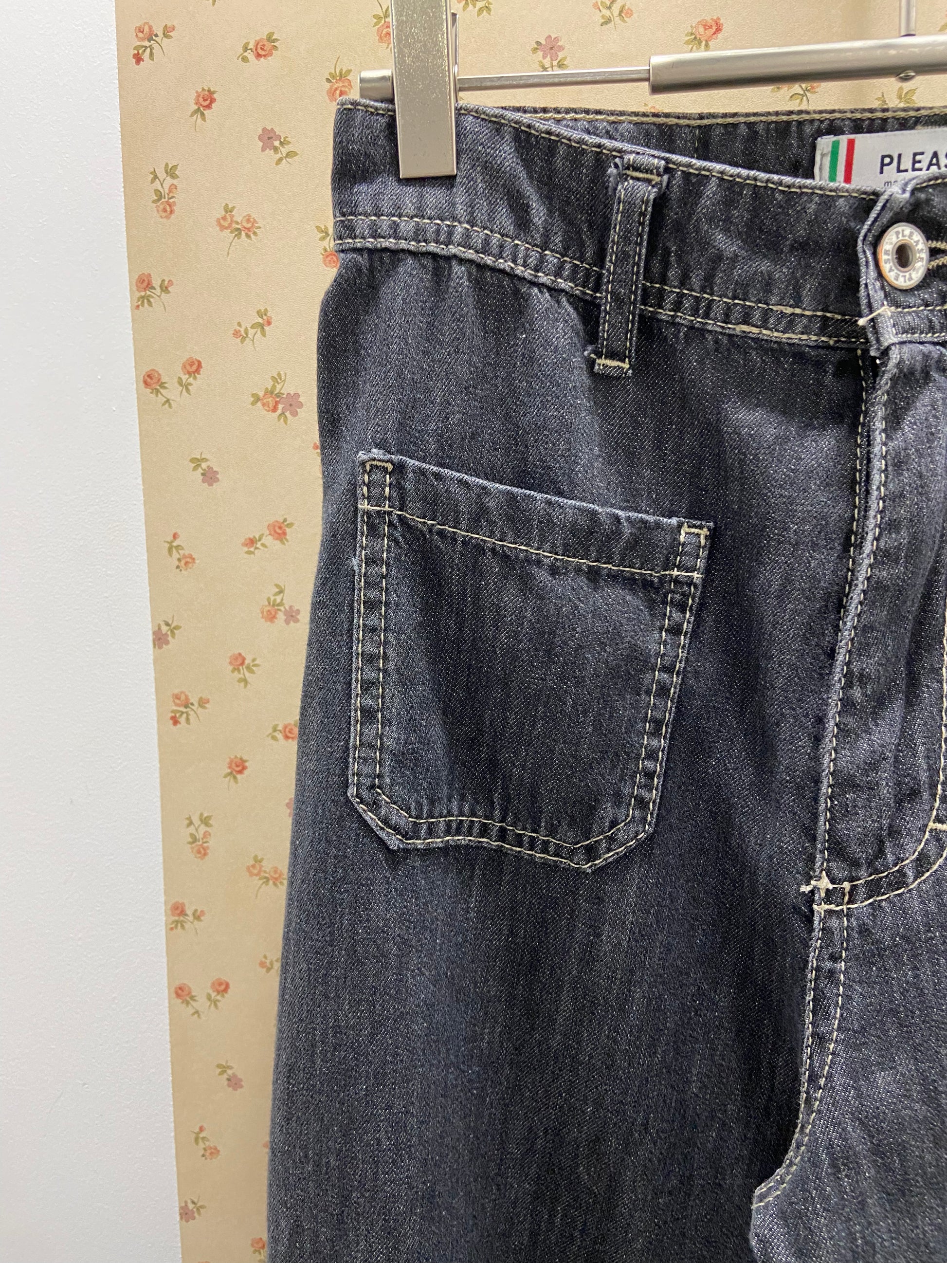 Pantalon jeans fluide et fin, coupe wide avec petites poches plaquées.