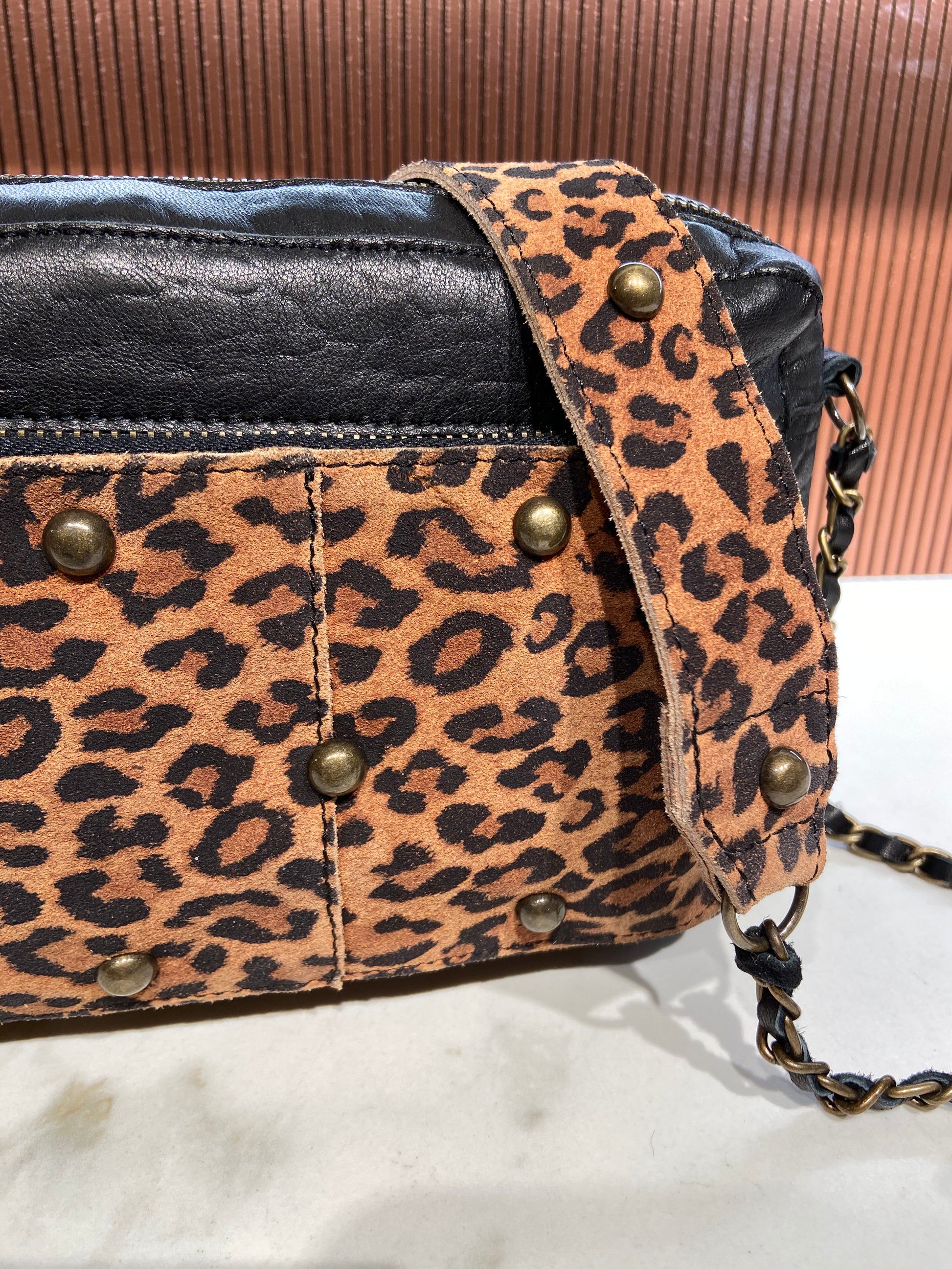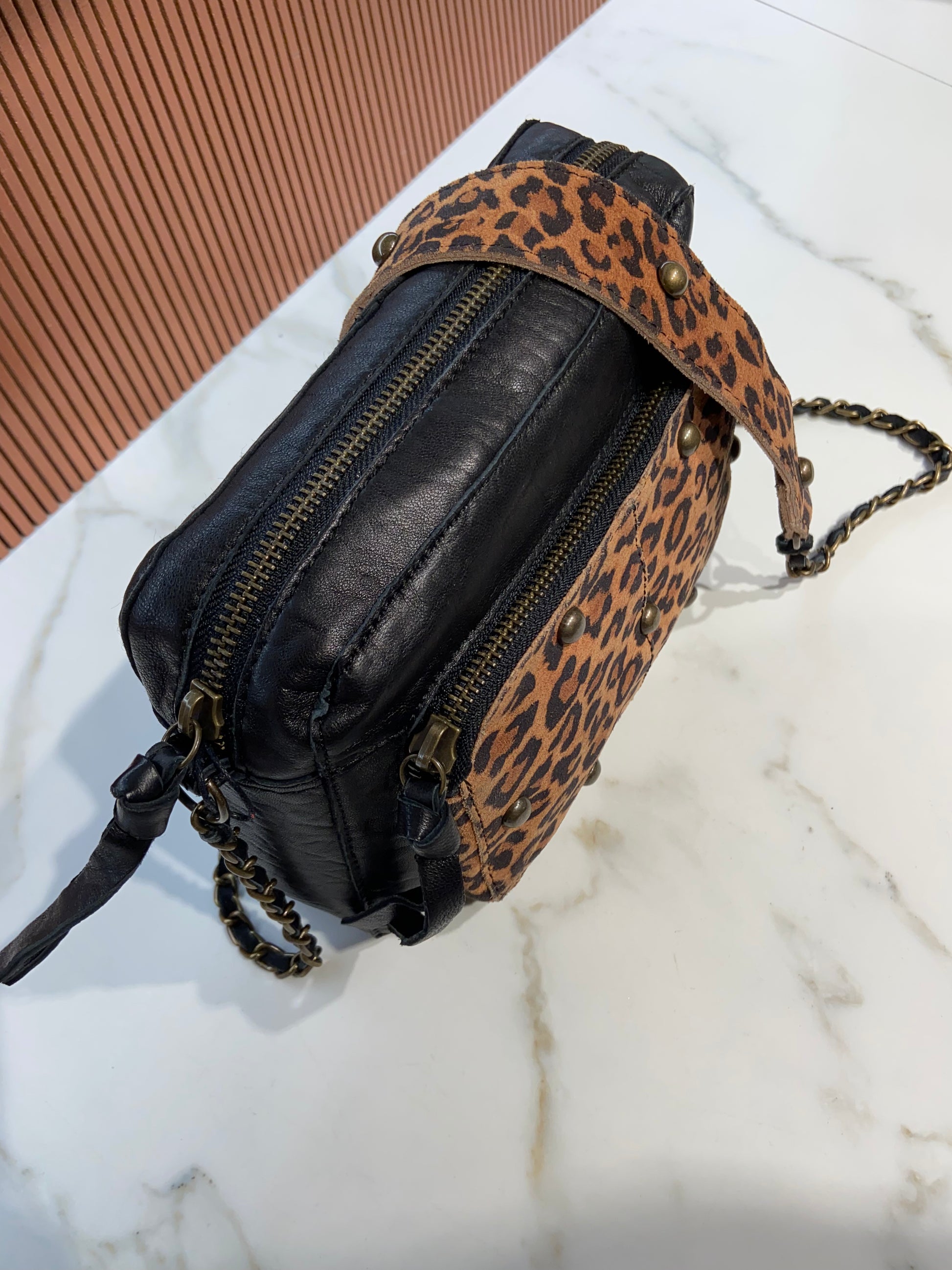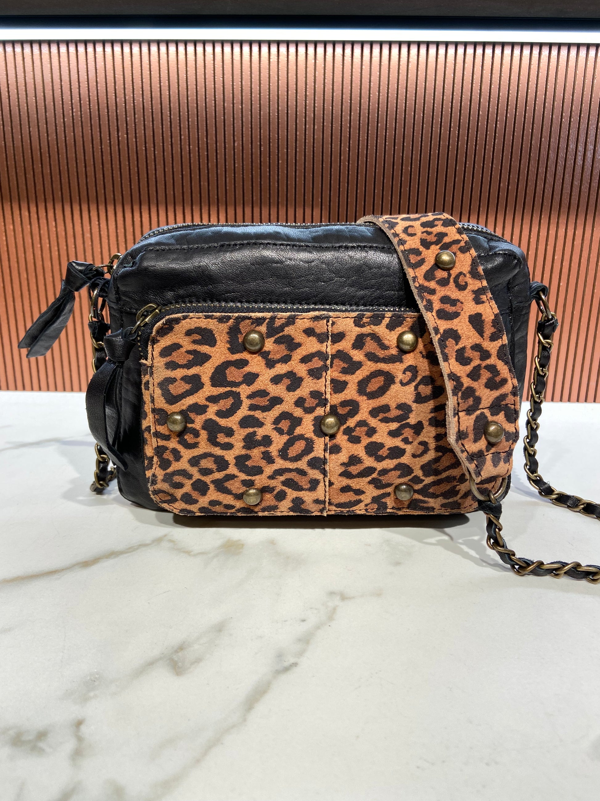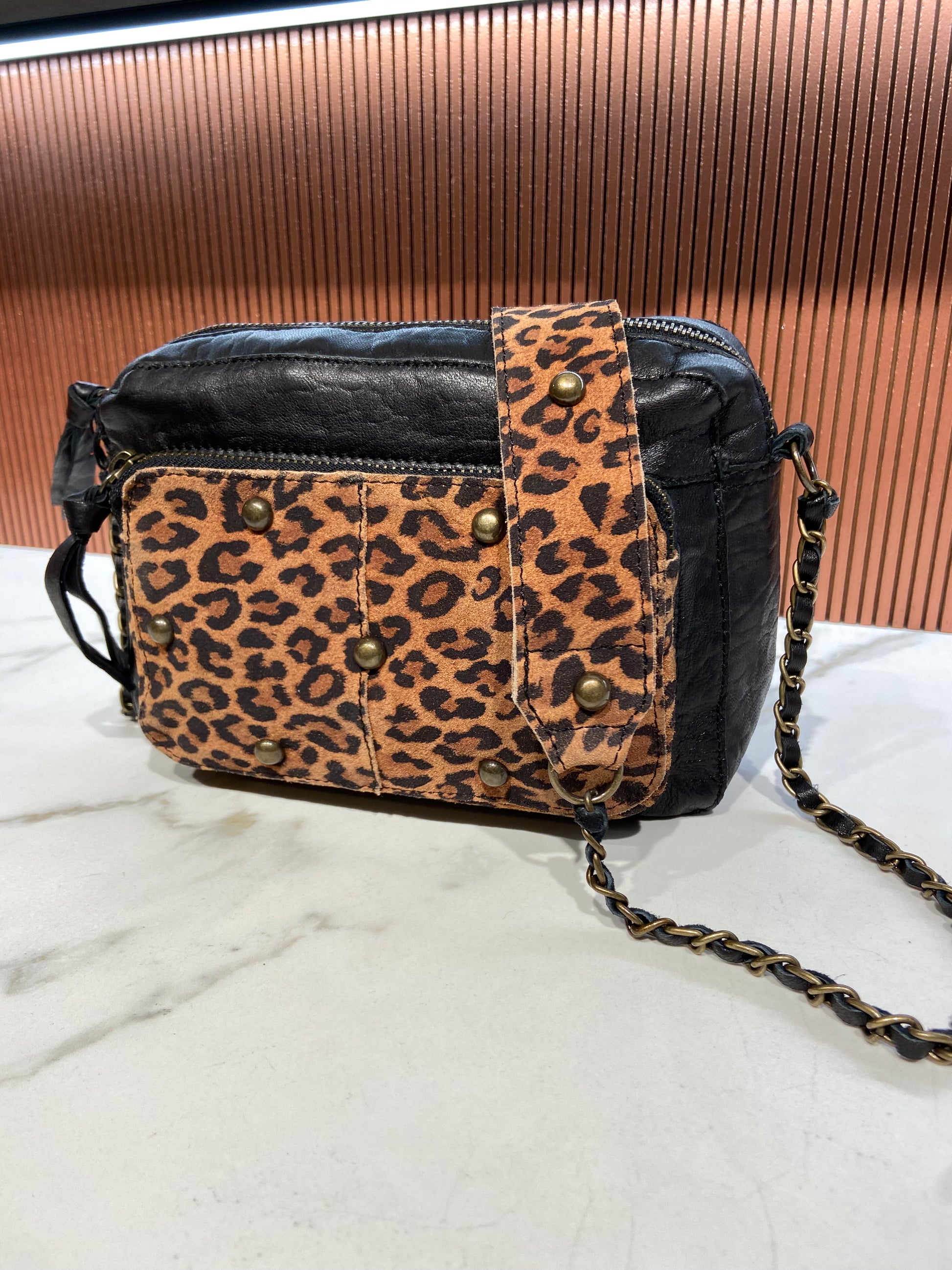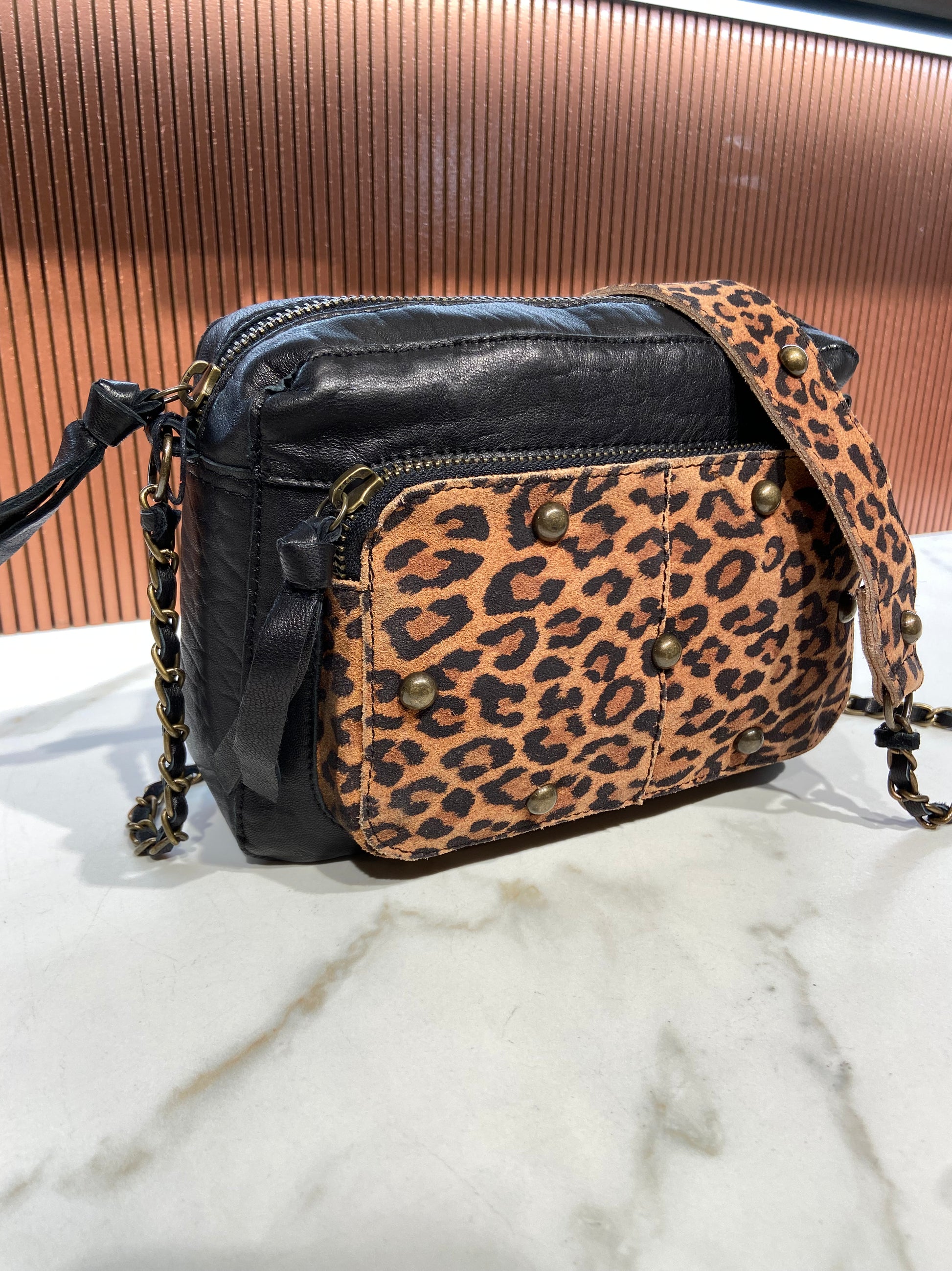 Pochette en cuir avec chainette.