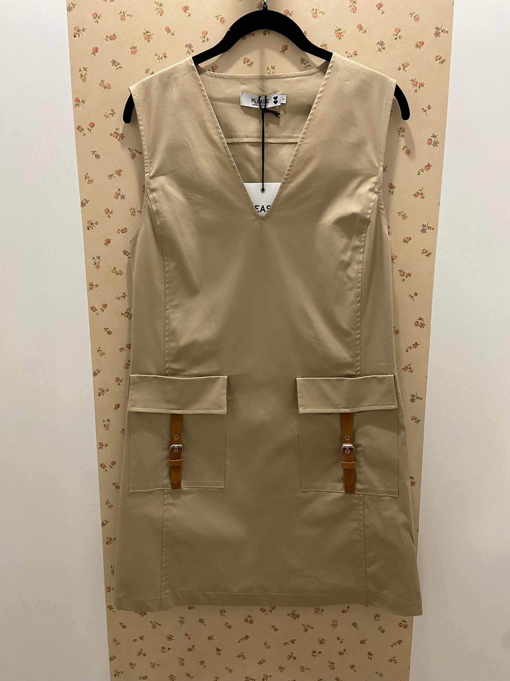 Robe courte trapèze avec poches sur le devant.
